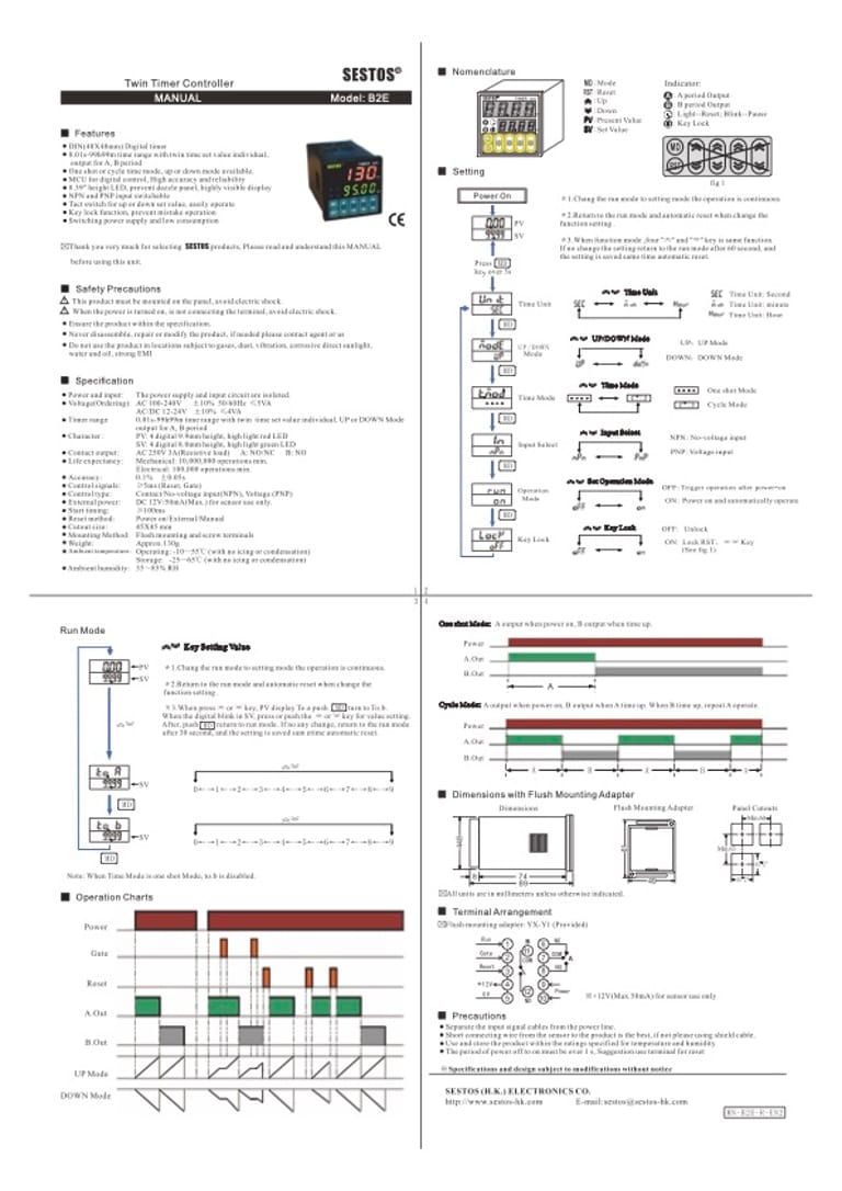SESTOS B2E-2R-24 Repeat Cycle Digital Twin Timer Relay, AC/DC 12-24V, NPN/PNP Input Switchable, Programmable Dual Output